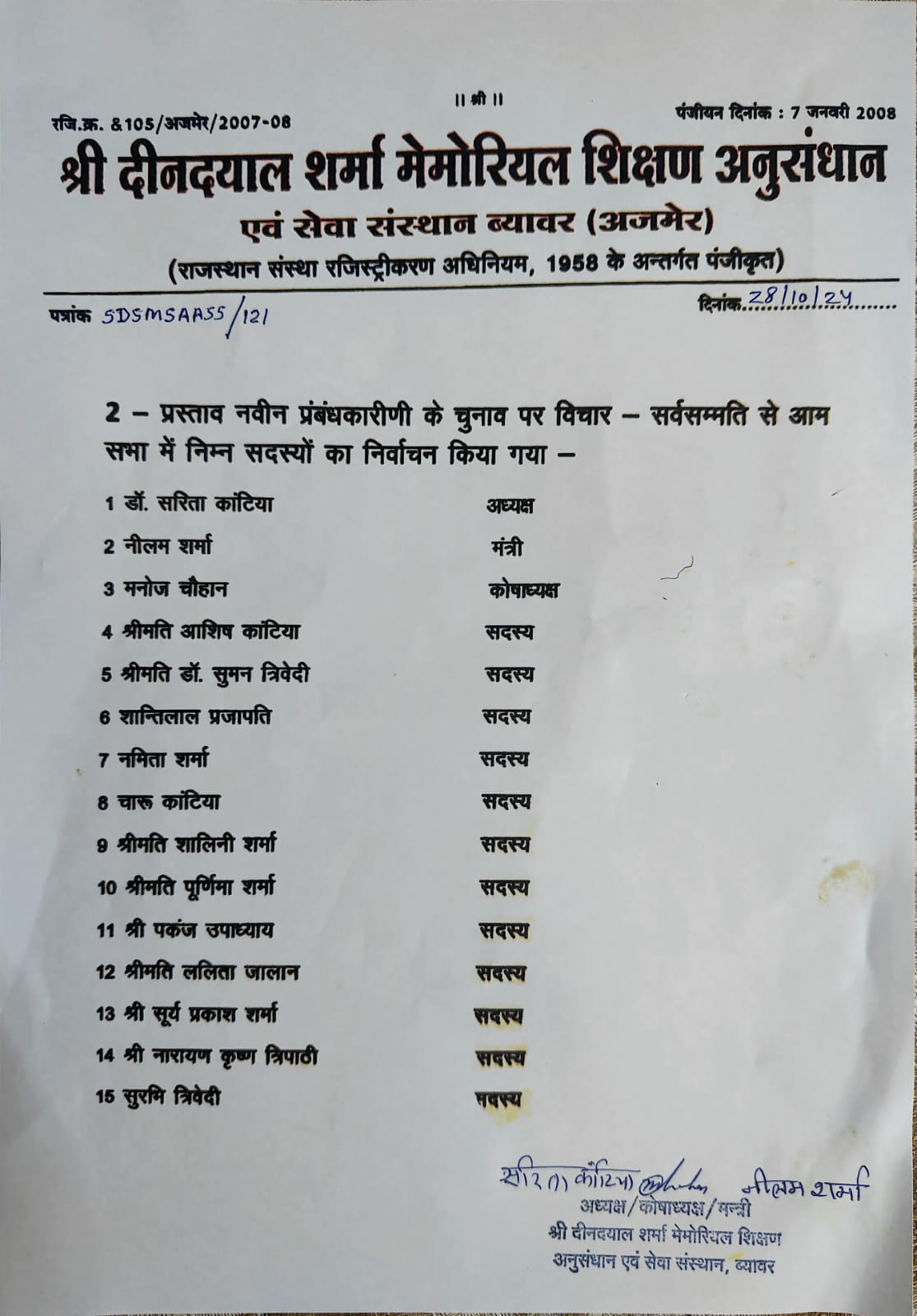 Address of the Institute Beawar Ajmer (Raj.) 305901